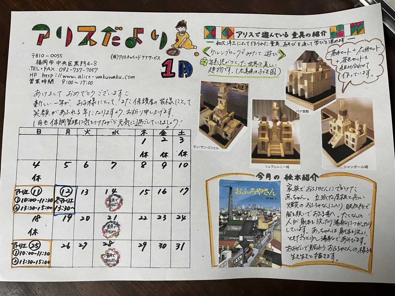 ◇12日(祝日)積木※13時半〜のみになります。